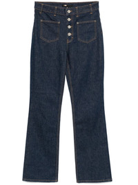 straight-leg jeans Highlights - Prussian blue - Organic cotton blend - Denim - Front button fastening - Contrast stitching - Two front patch pockets - Logo patch to the rear - Two rear patch pockets - Straight leg Imported Composition Calf Leather 100%, Organic Cotton 50%, Cotton 49%, Elastane 1% SIZE & FIT Model measurements Height 5 ft 10 in(1.78 m) Bust/Chest 33.85 in(86 cm) Hips 36.61 in(93 cm) Waist 26.77 in(68 cm) FittingInformation Designed for a straight-leg fit, these jeans allow for a close fit at the waist and an unrestricted and comfortable fit over the leg Constructed from stretch denim, this piece offers a stretch fit with durability This piece fits large – take one size down Washing instructions Machine Wash