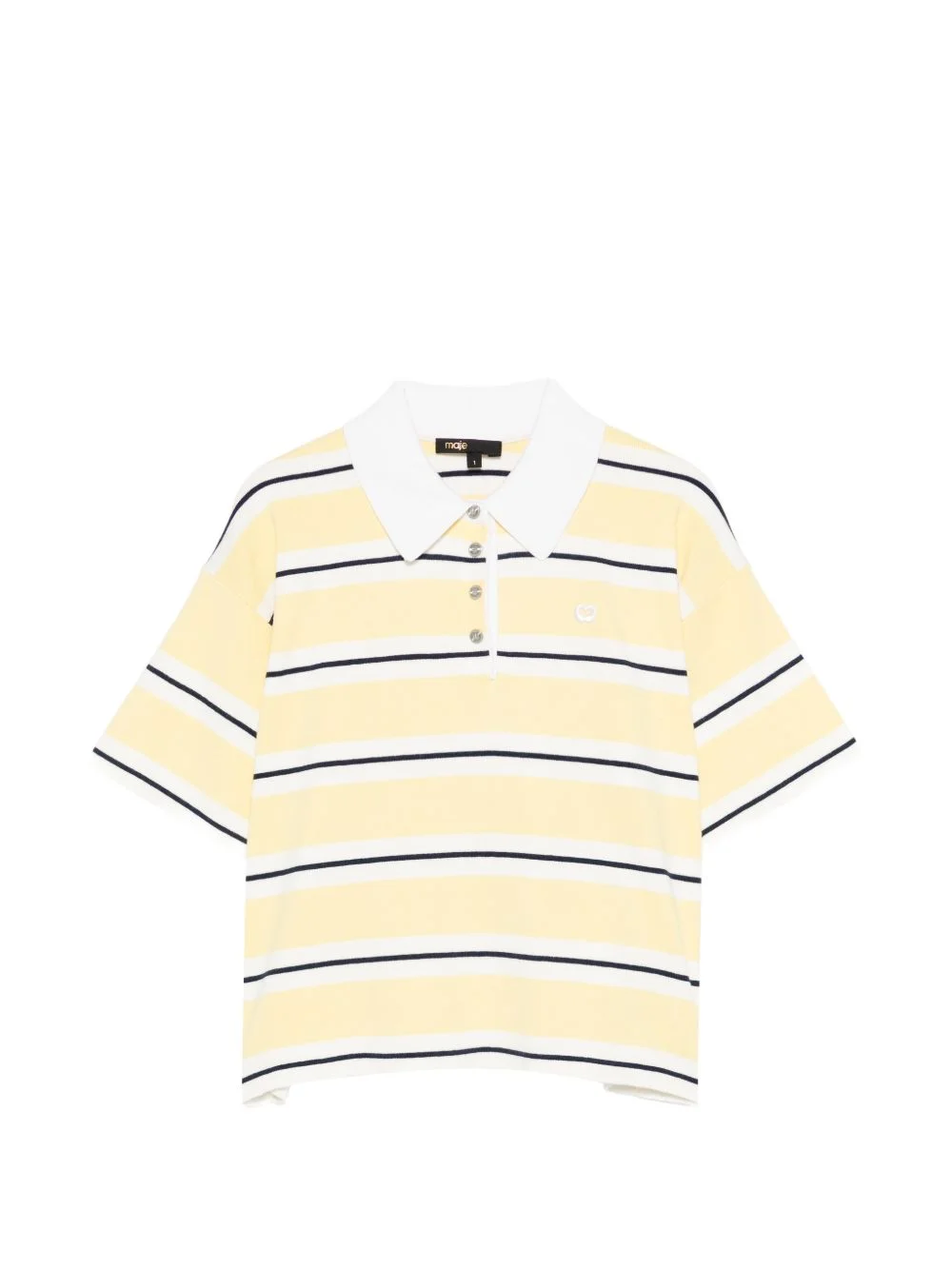 striped polo shirt Highlights - Pale yellow - Striped pattern - Polo collar - Short sleeves - Button fastening - Embroidered logo Imported Composition Organic Cotton 70%, Recycled Polyamide 20%, Silk 10% Washing instructions Hand Wash