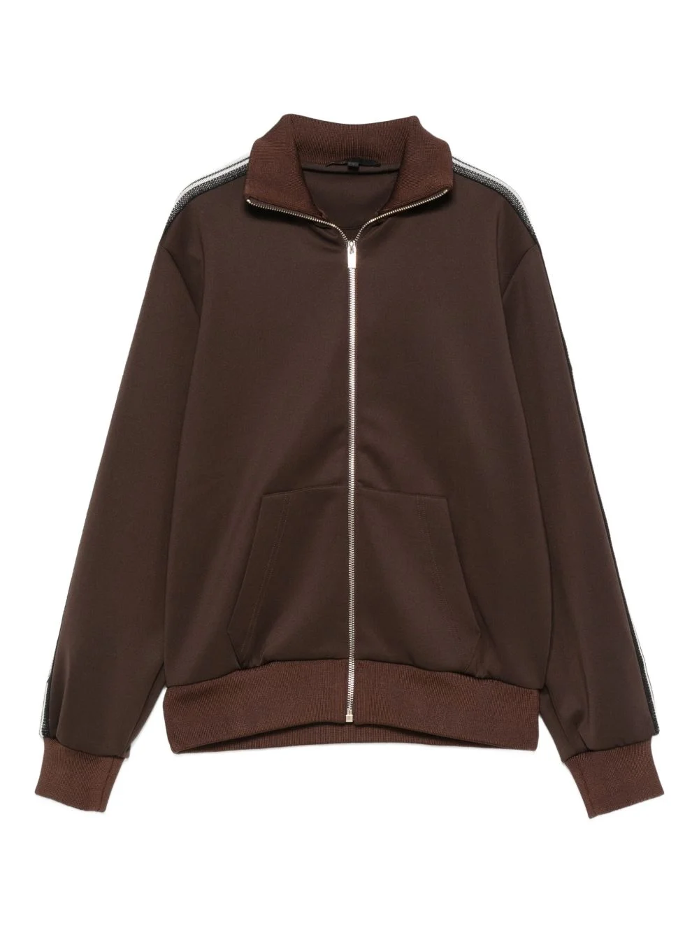 striped sweatshirt Highlights - Dark brown - Front zip fastening - Long sleeves - Striped detailing - Ribbed cuffs and hem Imported Composition Fabric 100% SIZE & FIT Model measurements Height 5 ft 11 in(1.8 m) Bust/Chest 31.49 in(80 cm) Hips 36.61 in(93 cm) Waist 24.4 in(62 cm) Washing instructions Read Manufacturer Guidelines