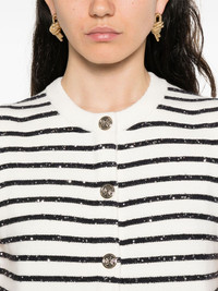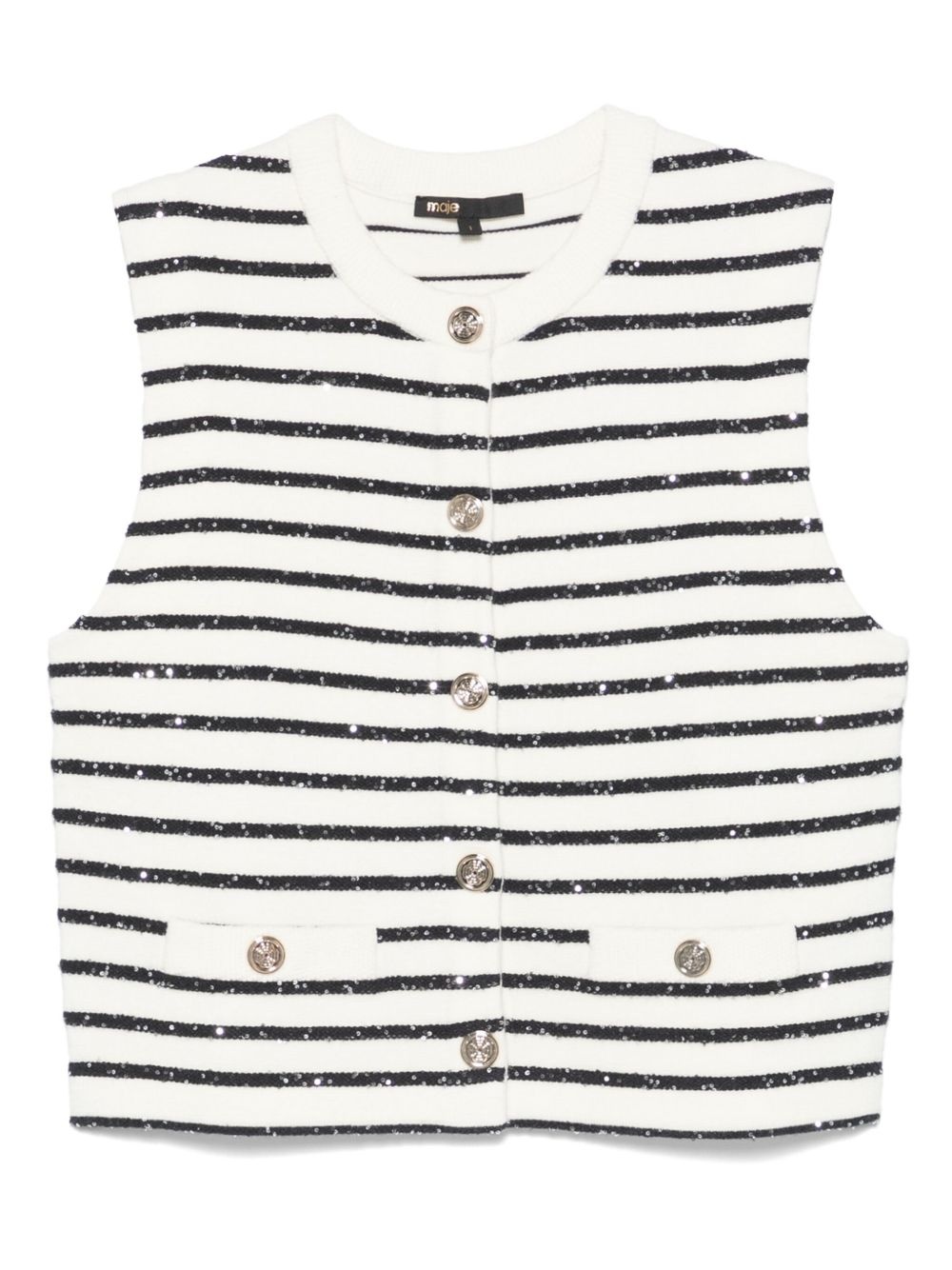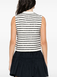 striped vest Highlights - White - Front button fastening - Faux pocket detail - Round neck - Sleeveless Imported Composition EcoVero Viscose (LENZING) 50%, Recycled Polyester 30%, Recycled Polyamide 20% SIZE & FIT Model measurements Height 5 ft 9 in(1.75 m) Bust/Chest 32.67 in(83 cm) Hips 36.22 in(92 cm) Waist 24.8 in(63 cm) FittingInformation Designed for a slim fit that sits just away from the body offering a close yet comfortable fit Made with a midweight knit, this piece offers some stretch Washing instructions Dry Clean Only