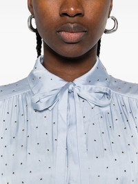 studded mini shirt dress Highlights - Light blue - Jewel embellishment - Tiered skirt - Collared neck - Tie fastening - Long sleeves Imported Composition Polyester 100% SIZE & FIT Model measurements Height 5 ft 11 in(1.8 m) Bust/Chest 32.67 in(83 cm) Hips 36.22 in(92 cm) Waist 24.4 in(62 cm) Washing instructions Hand Wash