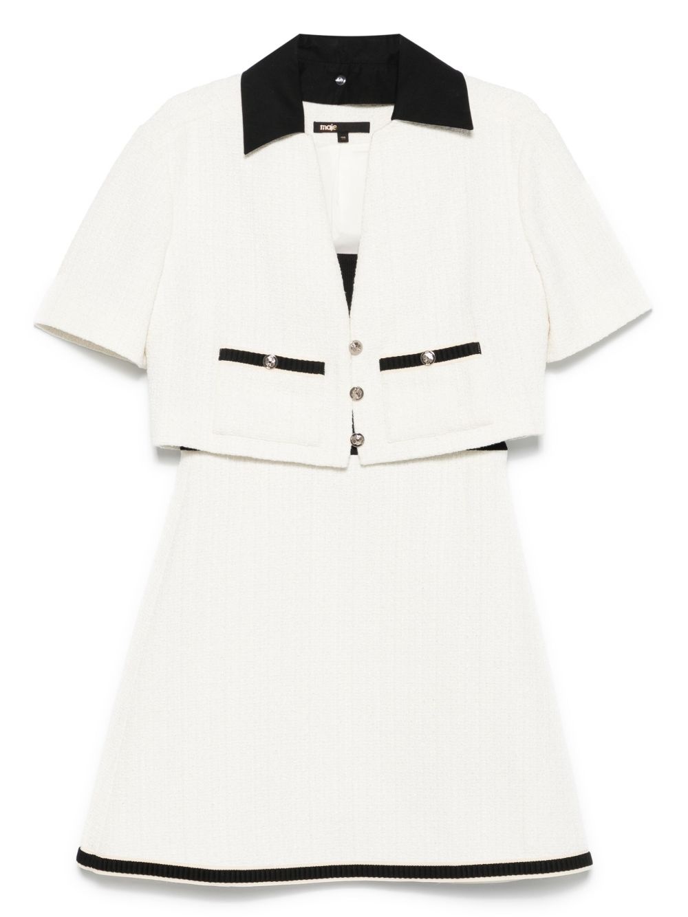 tweed dress and jacket set Highlights - White - Front button fastening - Two front patch pockets - Layered design - Contrasting trim Imported Composition Outer: Cotton 80%, Polyester 20%, Acrylic 14%, Polyamide 3%, Viscose 2%, Other fibres 1% Lining: Polyester 94%, Elastane 6% SIZE & FIT Model measurements Height 5 ft 10 in(1.78 m) Bust/Chest 31.49 in(80 cm) Hips 37 in(94 cm) Waist 23.62 in(60 cm) FittingInformation Designed for a slim fit that sits just away from the body offering a close yet comfortable fit Made from a midweight stretch fabric, this piece offers elasticity and flexibility when worn Washing instructions Dry Clean Only