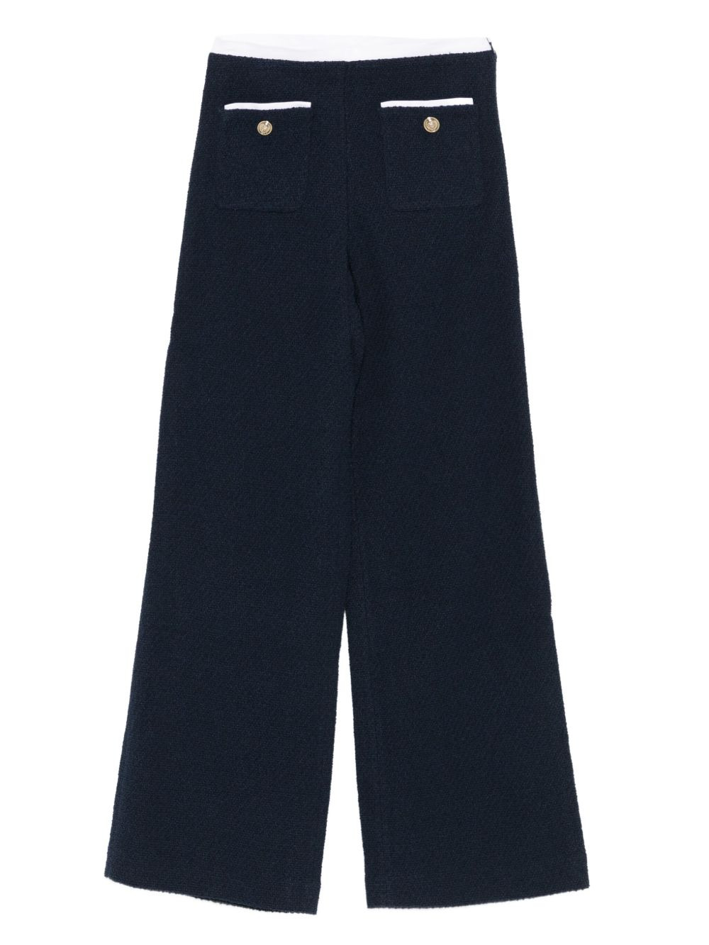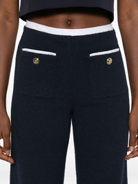 tweed straight-leg trousers Highlights - Navy blue - Tweed texture - Gold-tone buttons Imported Composition Outer: Cotton 63%, Polyester 24%, Acrylic 12%, Spandex/Elastane 1% Lining: Cotton 100% SIZE & FIT Model measurements Height 5 ft 10 in(1.78 m) Bust/Chest 31.49 in(80 cm) Hips 37 in(94 cm) Waist 23.62 in(60 cm) Washing instructions Dry Clean Only