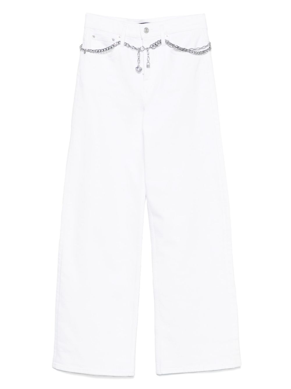 wide-leg jeans Highlights - White - Front button fastening - Classic five pockets - Logo patch to the rear - Belt loops Imported Composition Lining: Polyester 67%, Cotton 33% Outer: Calf Leather 100%, Cotton 99%, Elastane 1% Washing instructions Machine Wash