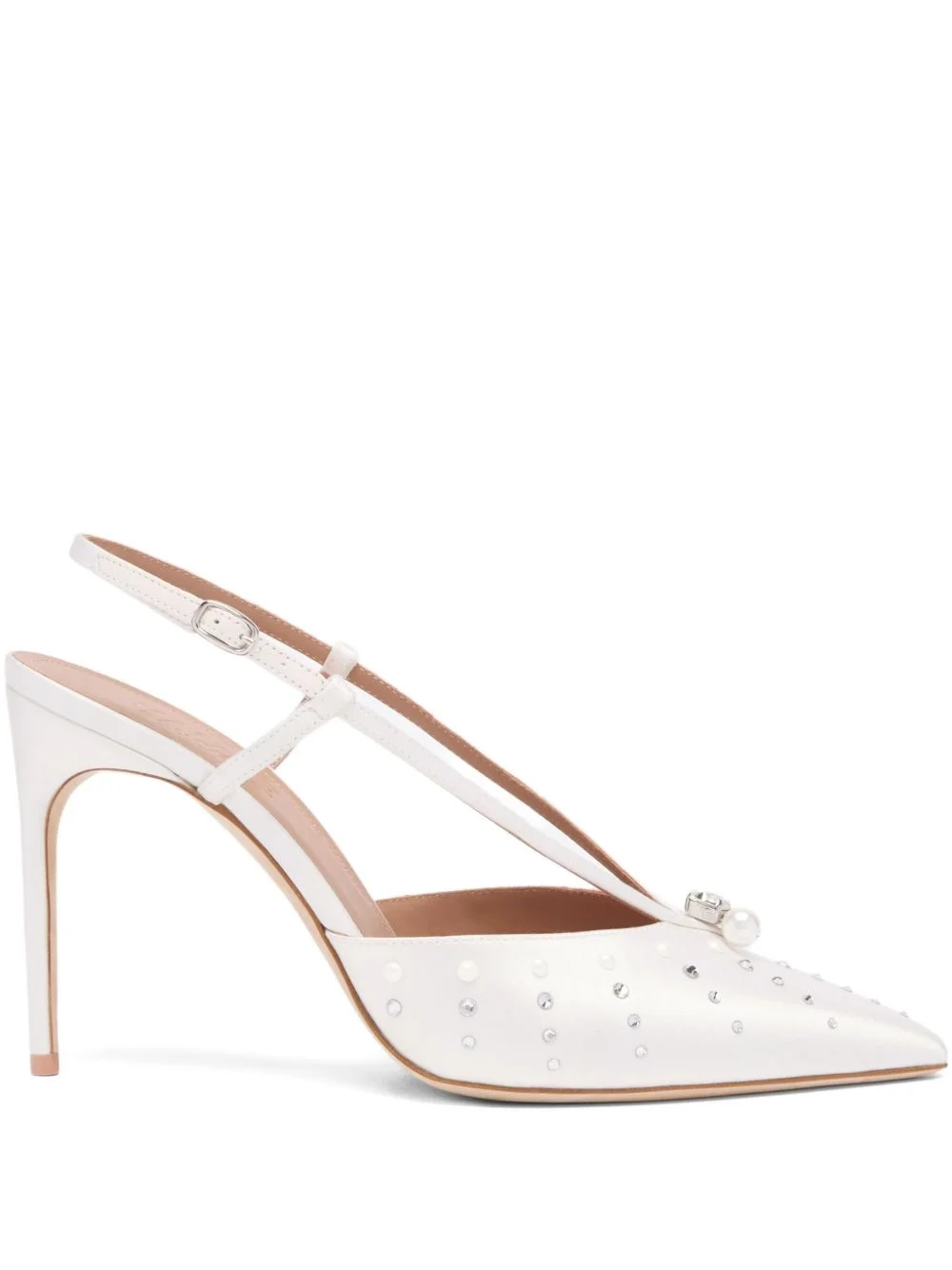 90mm crystal-pearl embellished pumps Highlights - White - Satin material - Crystal embellishments - Pearl embellishments - Slingback strap - Pointed toe Made in Italy Composition Outer: Satin 100% Sole: Calf Leather 100% Lining: Calf Leather 100% SIZE & FIT Measurement HEEL 3.54 in(9 cm)