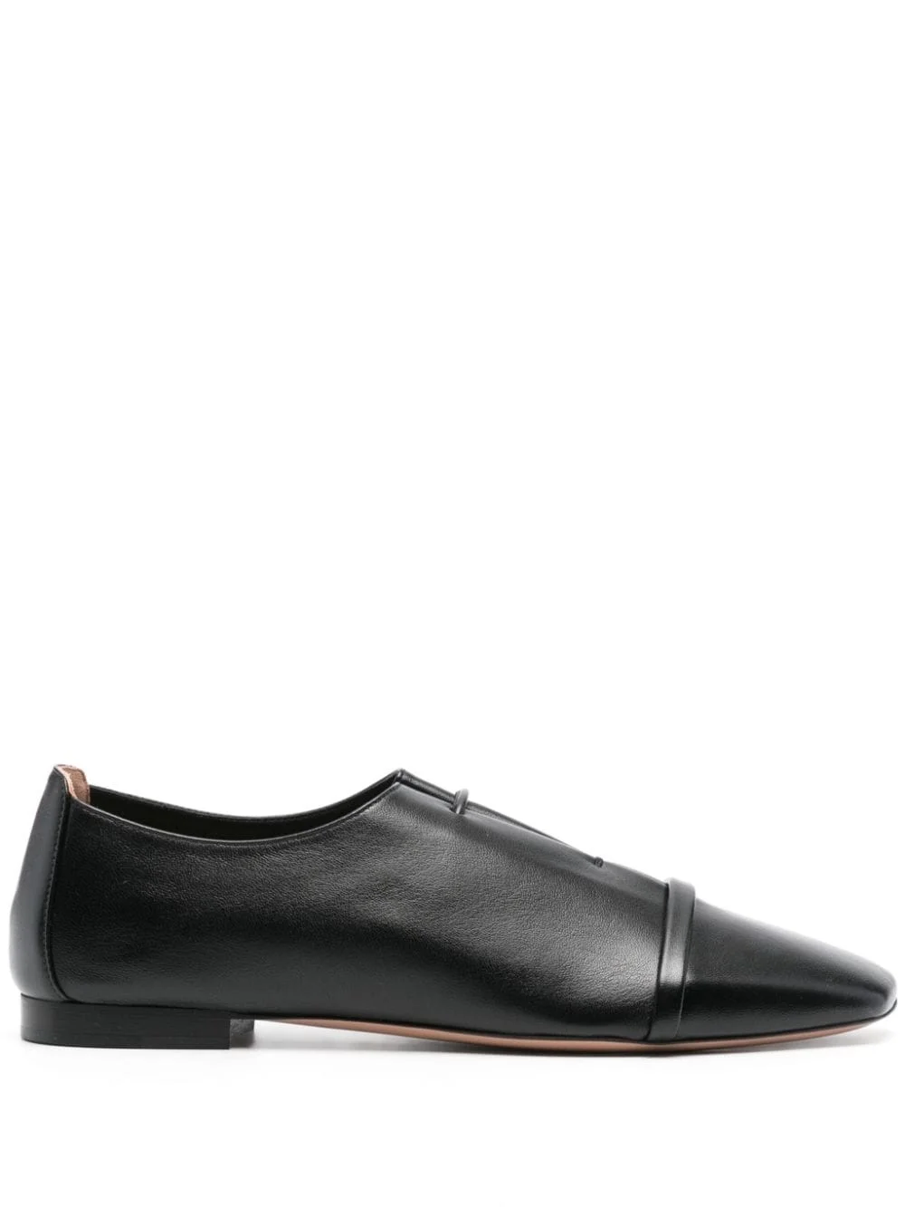 Jean leather oxford shoes Highlights - Black - Leather - Smooth grain - Asymmetric square toe - Decorative leather strap to the front - Branded insole - Logo at the sole - Low block heel - Front lace-up fastening Made in Italy Composition Outer: Nappa Leather 100% Sole: Leather 100% Lining: Calf Leather 100% SIZE & FIT Measurement HEEL 0.59 in(1.5 cm)