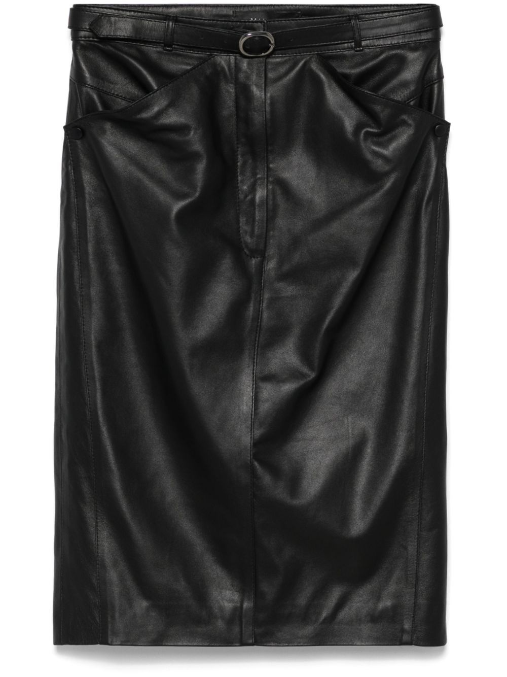 Dua midi skirt Highlights - Black - Leather - Smooth grain - Panelled design - Front press-stud and zip fastening - High waist - Belt loops - Detachable waist belt - Two diagonal pockets to the sides - Rear slit - Full lining - Straight hem - Knee-length Imported Composition Leather 100% SIZE & FIT Model measurements Height 5 ft 10 in(1.78 m) Bust/Chest 33.85 in(86 cm) Hips 36.61 in(93 cm) Waist 26.77 in(68 cm) FittingInformation This midi-length skirt is intended to be worn just below the waist Soft leather has a supple and smooth construction offering some flexibility Washing instructions Do Not Wash/Do Not Dry Clean