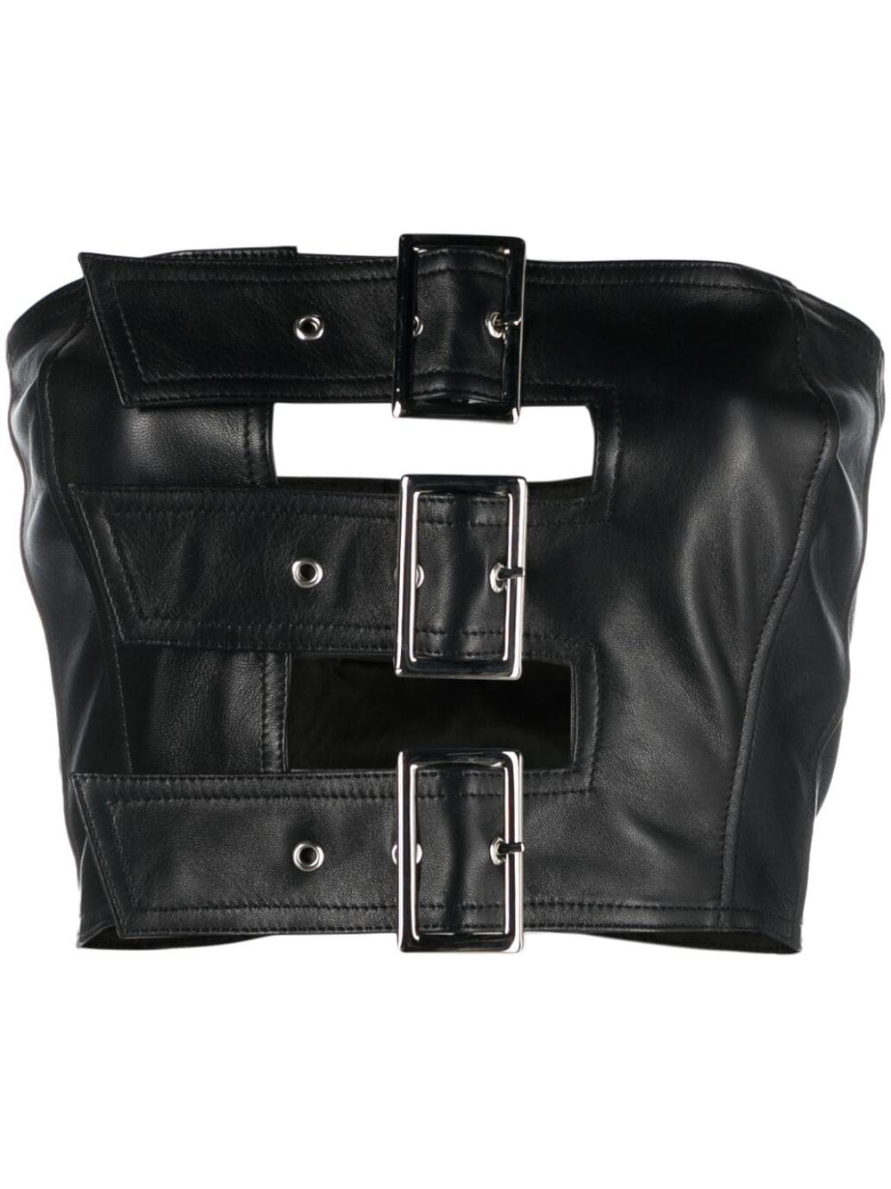 cut-out buckled bandeau top Highlights - Black - Leather - Cut-out detailing - Cropped - Bandeau style - Buckle fastening Imported Composition Outer: Leather 100% Lining: Viscose 80%, Polyester 20% SIZE & FIT Model measurements Height 5 ft 10 in(1.78 m) Bust/Chest 31.49 in(80 cm) Hips 35.03 in(89 cm) Waist 23.62 in(60 cm) FittingInformation Designed for a close fit throughout Firm leather offering little flexibility to maintain its durability and sturdiness This piece fits true to size – take your usual size