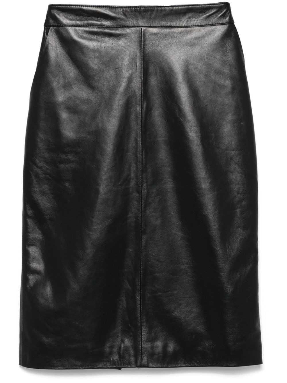 leather midi skirt Highlights - Black - Leather - Smooth grain - Concealed rear hook and zip fastening - High waist - Two side slash pockets - Rear slit - Full lining - Straight hem - Knee-length Imported Composition Leather 100% SIZE & FIT Model measurements Height 5 ft 10 in(1.78 m) Bust/Chest 33.85 in(86 cm) Hips 36.61 in(93 cm) Waist 26.77 in(68 cm) FittingInformation This midi-length skirt is intended to be worn low on the hips The vented hem offers movement at the rear Soft leather has a supple and smooth construction offering some flexibility Washing instructions Do Not Wash/Do Not Dry Clean