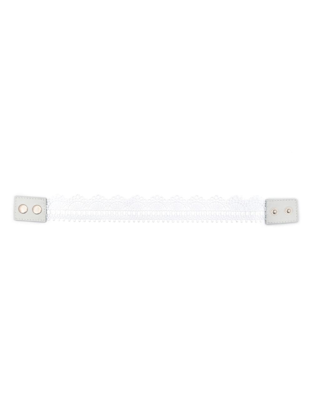 lace choker necklace Highlights - White - Calf leather - Lace embroidery - Choker chain - Press-stud fastening - Silver-tone hardware Imported SIZE & FIT Measurement Length when open 14.96 in(38 cm) WIDTH 1.37 in(3.5 cm)
