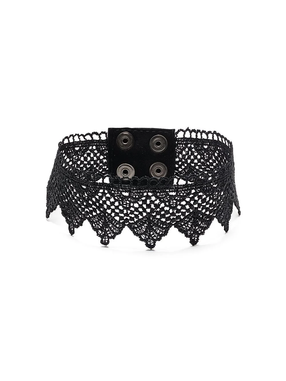 lace choker necklace Highlights - Black - Leather - Lace detailing - Rear press-stud fastening Imported SIZE & FIT Model measurements Height 5 ft 10 in(1.78 m) Bust/Chest 33.07 in(84 cm) Hips 35.82 in(91 cm) Waist 25.98 in(66 cm) Measurement Length when open 14.17 in(36 cm) WIDTH 1.77 in(4.5 cm)