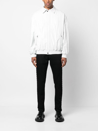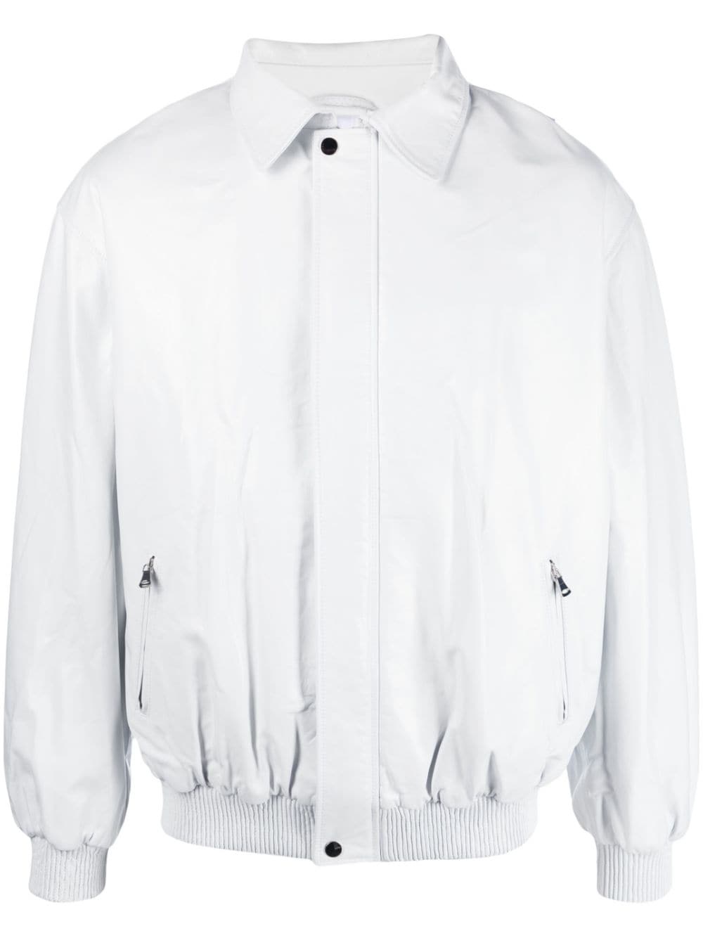 leather bomber jacket white leather spread collar oversize frame long sleeves concealed front zip fastening ribbed cuffs ribbed hem two side zip-fastening pockets When buying this unisex item, keep in mind that it is graded in standard men's sizing. Imported Composition Leather 100% SIZE & FIT Model measurements Height 5 ft 10 in(1.78 m) Bust/Chest 31.49 in(80 cm) Hips 36.22 in(92 cm) Waist 25.59 in(65 cm) FittingInformation This piece fits true to size. We recommend you get your regular size Cut for a loose fit Made with a mid-weight non-stretch fabric Washing instructions Specialist Cleaning
