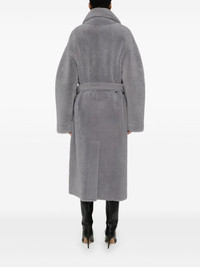 Myah coat Highlights - Slate grey - Shearling - Double-breasted press-stud fastening - Notched lapels - Long sleeves - Two front flap pockets - Central rear vent - Leather lining - Straight hem - Mid-length Imported Composition Lamb Fur 100%, Lamb Skin 100% SIZE & FIT Model measurements Height 5 ft 11 in(1.8 m) Bust/Chest 31.49 in(80 cm) Hips 36.61 in(93 cm) Waist 24.4 in(62 cm) FittingInformation Designed for an oversized fit, offering additional room throughout The tie fastening gives an adaptable and personalised fit Firm shearling has a treated construction offering some durability
