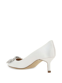 50mm Hangisi pumps Highlights - Cream white - Silk satin - Slip-on style - 50mm kitten heel - Crystal buckle detail - Almond toe - Branded leather insole - Leather outsole Made in Italy Composition Silk 100% SIZE & FIT Measurement HEEL 1.96 in(5 cm)