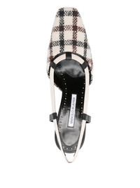 70mm Vestal checked slingback pumps Highlights - Off-white - Checked pattern - Slingback strap - Block heel - Square toe - Leather trim Made in Italy Composition Outer: Wool 90%, Calf Leather 10% Lining: Calf Leather 100% Sole: Kid Leather 100% SIZE & FIT Measurement HEEL 2.75 in(7 cm)