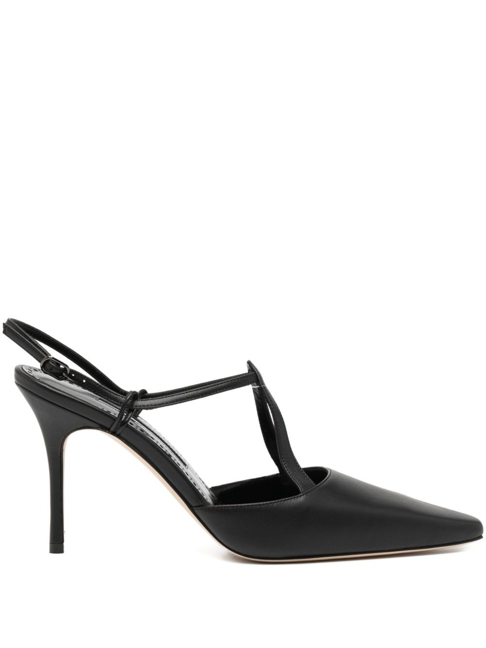 90mm Minia pumps Highlights - Black - Rear buckle fastening - Pointed toe - Branded footbed Made in Italy Composition Sole: Leather 100% Outer: Leather 100% Lining: Leather 100% SIZE & FIT Measurement HEEL 3.14 in(8 cm)