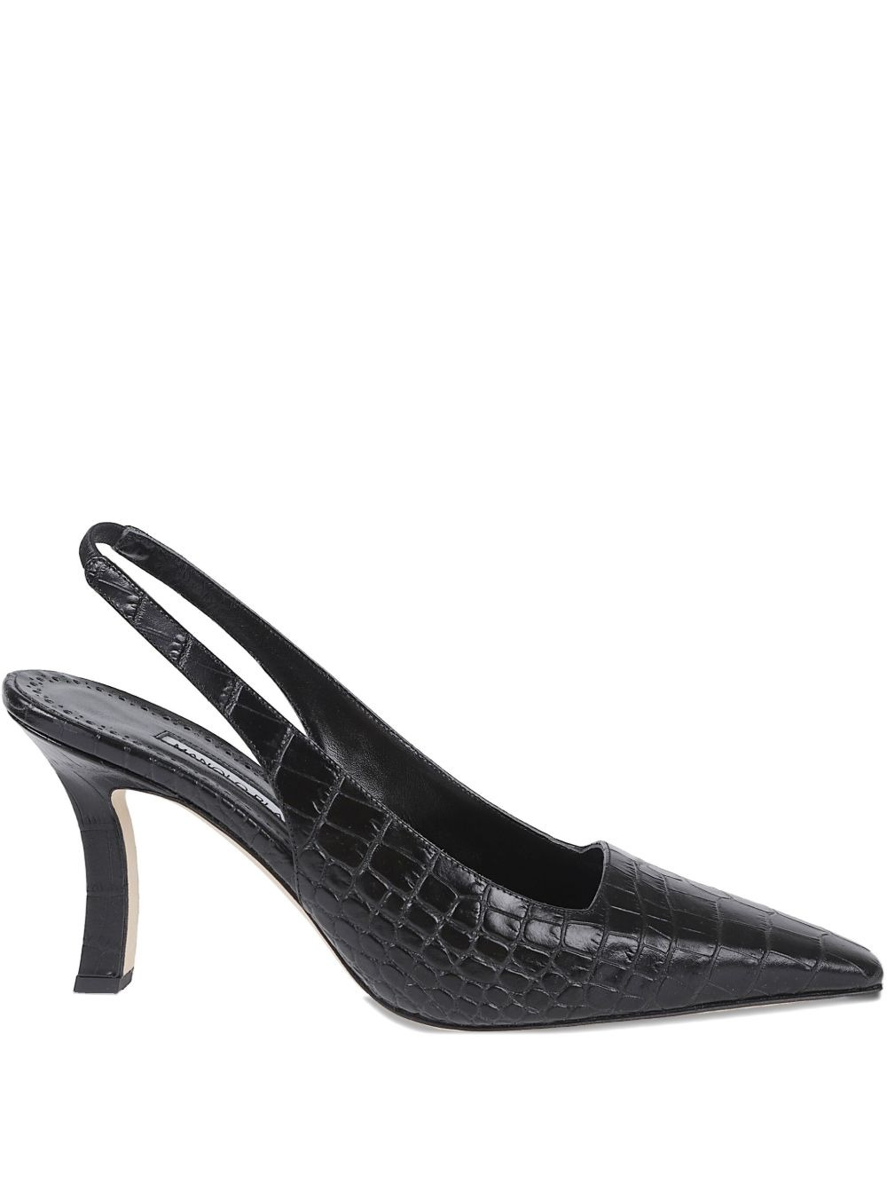 90mm slingback pumps Highlights - Black - Leather - Slingback strap - Pointed toe - 90mm heel - Crocodile embossed effect Made in Italy Composition Sole: Calf Leather 100% Outer: Calf Leather 100% Lining: Calf Leather 100% SIZE & FIT Measurement HEEL 3.54 in(9 cm)