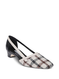 check-pattern pumps Highlights - White - Check pattern - Mid heel - Pointed toe - Cut-out detailing Made in Italy Composition Outer: Wool 90%, Calf Leather 10% Lining: Kid Leather 100% Sole: Calf Leather 100% SIZE & FIT Measurement HEEL 1.18 in(3 cm)