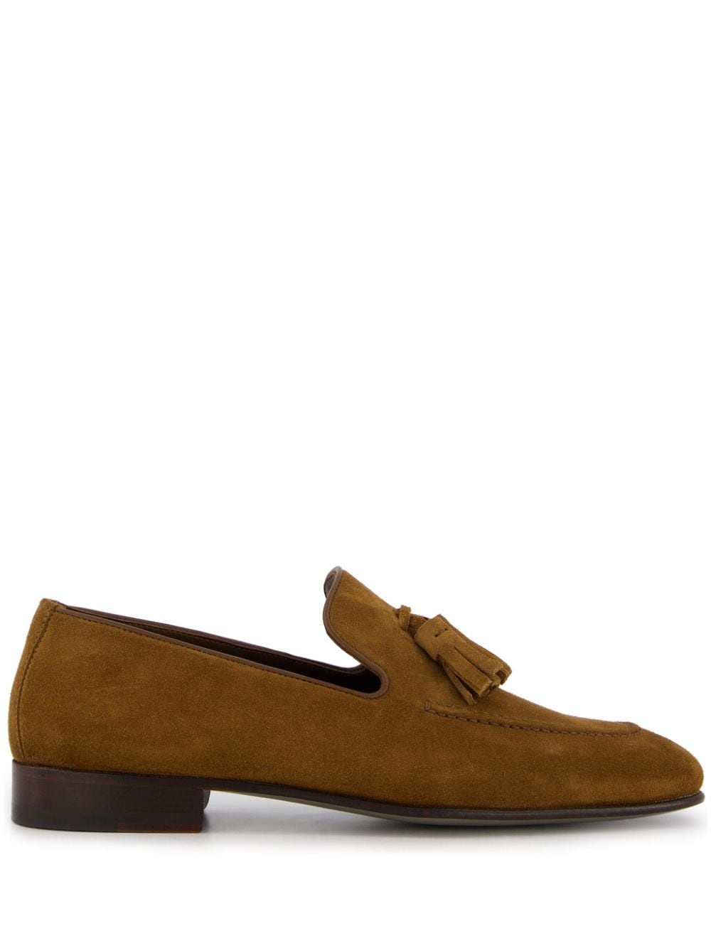 Chester suede loafers Highlights - Camel brown - Calf suede - Tassel detail - Piped-trim detailing - Almond toe - Slip-on style - Branded leather insole - Low block heel - Leather sole Made in Italy Composition Sole: Calf Leather 100% Lining: Calf Leather 100% Outer: Calf Suede 100%