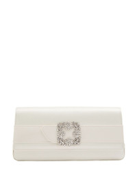 Light Cream Satin Jewel Buckle Clutch