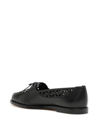 Delirium cut-out leather loafers Manolo Blahnik's impeccable taste is evident in these Delirium loafers. Constructed from smooth leather, the silhouette is enriched with geometric laser-cut details, lending a distinctive final touch. Highlights - Black - Calf leather - Cut-out detailing - Front lace-up fastening - Round toe - Branded insole - Flat leather sole Made in Italy Composition Outer: Calf Leather 100% Sole: Calf Leather 100% Lining: Calf Leather 100% SIZE & FIT Measurement Sole height 1.18 in(3 cm)
