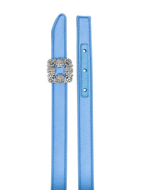 Hangisi 20mm crystal-embellished belt blue calf leather satin finish crystal embellishment punched holes adjustable fit Made in Italy Composition Lining: Calf Leather 100% Outer: Satin 100% SIZE & FIT Measurement Minimum Length 28.34 in(72 cm) WIDTH 0.78 in(2 cm) TOTAL LENGTH 30.7 in(78 cm)