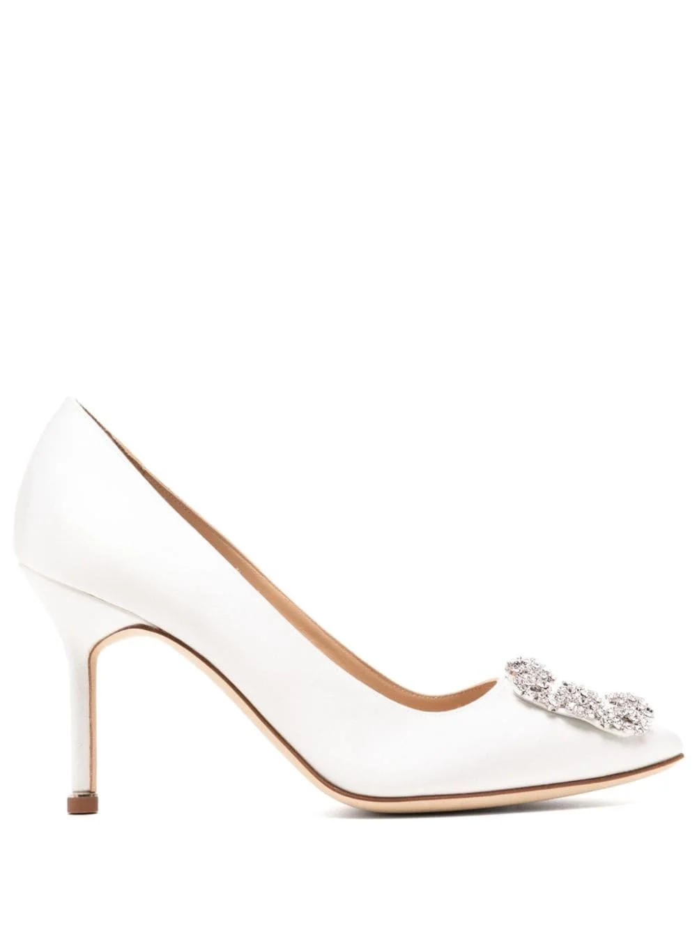 Hangisi 90mm satin pumps Highlights - White - Calf leather - Satin finish - Crystal-embellished applique detail - Slip-on style - Branded leather insole - 90mm stiletto heel - Leather outsole - This piece comes complete with a protective dust bag. Made in Italy Composition Other fibres 100% SIZE & FIT Measurement HEEL 3.54 in(9 cm) Washing instructions Do Not Wash/Do Not Dry Clean