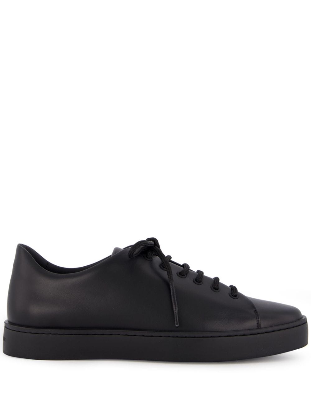 leather trainers Highlights - Black - Calf leather - Front lace-up fastening - Branded insole - Round toe - Rubber sole Made in Italy Composition Lining: Calf Leather 100% Outer: Calf Leather 100% Sole: Rubber 100%