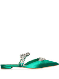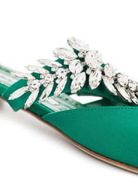 Green Satin Crystal Embellished Flat Mules