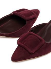 50mm Maysale mules With Manolo Blahnik's pumps, you won't need to compromise style for comfort. Resting on a kitten heel, this plush suede pair has sleek pointed toe. Two birds, one stone. Highlights - Wine-red - Suede - Kitten heel - Pointed toe - Leather sole - Front buckle detail Made in Italy Composition Outer: Calf Leather 100% Lining: Calf Leather 100% Sole: Calf Leather 100% SIZE & FIT Model measurements Height 5 ft 11 in(1.8 m) Bust/Chest 32.67 in(83 cm) Hips 35.82 in(91 cm) Waist 25.98 in(66 cm) Measurement HEEL 2.55 in(6.5 cm) FittingInformation This piece fits small – you might want to get one size up