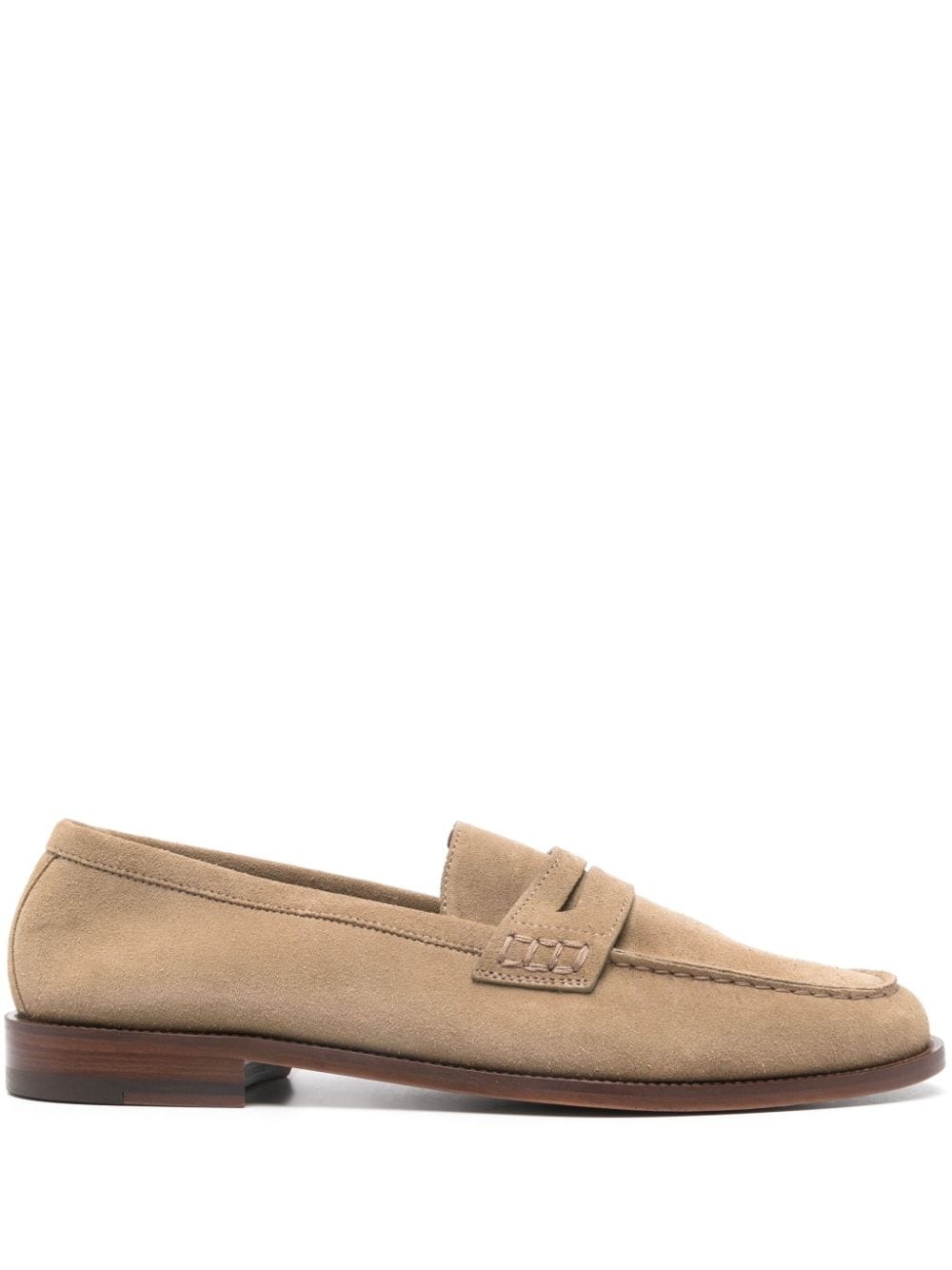 Perry loafers Highlights - Almond beige - Calf suede - Almond toe - Moc stitching - Penny slot - Branded leather insole - Suede lining - Flat leather sole - Slip-on style Made in Italy Composition Lining: Calf Leather 100% Outer: Calf Suede 100% Sole: Calf Leather 100% SIZE & FIT Measurement HEEL 0.98 in(2.5 cm)