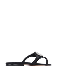 Trinamu crystal-embellished satin flat sandals Highlights - Black - Satin material - Crystal embellishment - Thin straps - Flat sole - Open toe Imported Composition Outer: Fabric 100% Sole: Rubber 100% Lining: Fabric 100%