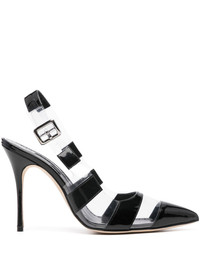 Uxra 70mm slingback pumps Highlights - Black - Leather trim - Transparent panel detail - Horizontal stripe pattern - Pointed toe - Cut-out detailing - Branded leather insole - 70mm high stiletto heel - Buckle-fastening slingback strap Made in Italy Composition Lining: PVC 100%, Calf Leather 100% Sole: Calf Leather 100% Outer: Calf Leather 100%, PVC 100% SIZE & FIT Measurement HEEL 4.52 in(11.5 cm)