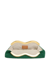 Baci clutch bag Highlights - Emerald green - Magnetic fastening - Internal logo patch - Full lining Made in Italy Composition Lining: Canvas 100% Outer: Raffia 100% SIZE & FIT Measurement DEPTH 3.93 in(10 cm) HEIGHT 4.72 in(12 cm) WIDTH 11.02 in(28 cm)