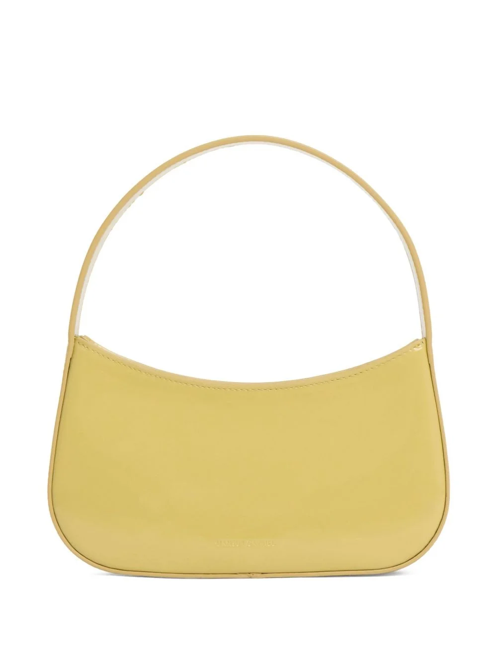 curved leather shoulder bag Highlights - Yellow - Calf leather - Top handle - Zip fastening Made in Italy Composition Lining: Canvas 100% Outer: Calf Leather 100% SIZE & FIT Measurement DEPTH 1.5 in(3.8 cm) HEIGHT 4 in(10.1 cm) WIDTH 8.25 in(20.9 cm)