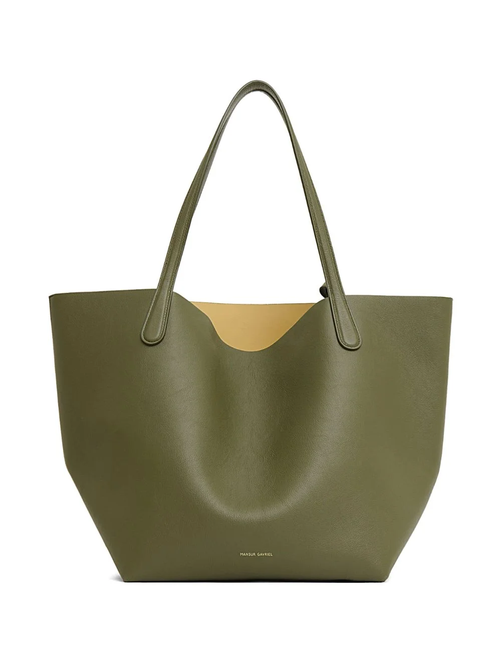 Everyday Soft leather tote bag Highlights - Olive green - Calf leather - Top handles - Internal pouch - Logo detail Made in Italy Composition Lining: Lambskin 100% Outer: Calf Leather 100% SIZE & FIT Measurement DEPTH 9.05 in(23 cm) HEIGHT 11.81 in(30 cm) WIDTH 21.45 in(54.5 cm)