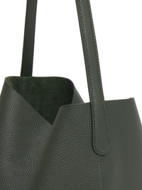 large Everyday Cabas tote bag Highlights - Khaki - Calf leather - Pebbled texture - Magnetic fastening - Single top handle - Logo stamp to the front - Main compartment - Suede lining - Internal patch pocket Made in Italy Composition Outer: Calf Leather 100% Lining: Fabric 100% SIZE & FIT Measurement DEPTH 8.66 in(22 cm) HEIGHT 12.2 in(31 cm) STRAP 12.59 in(32 cm) WIDTH 15.74 in(40 cm)