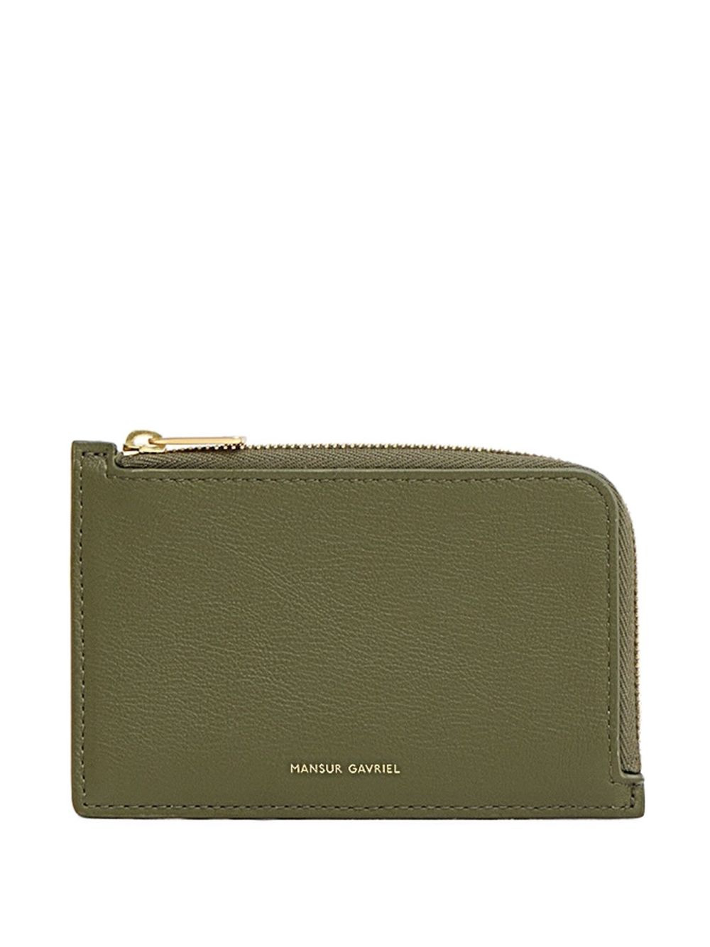 logo-plaque leather wallet Highlights - Green - Calf leather - Zip fastening - Card slots - Logo plaque - Gold-tone hardware Made in Italy Composition Outer: Calf Leather 100%