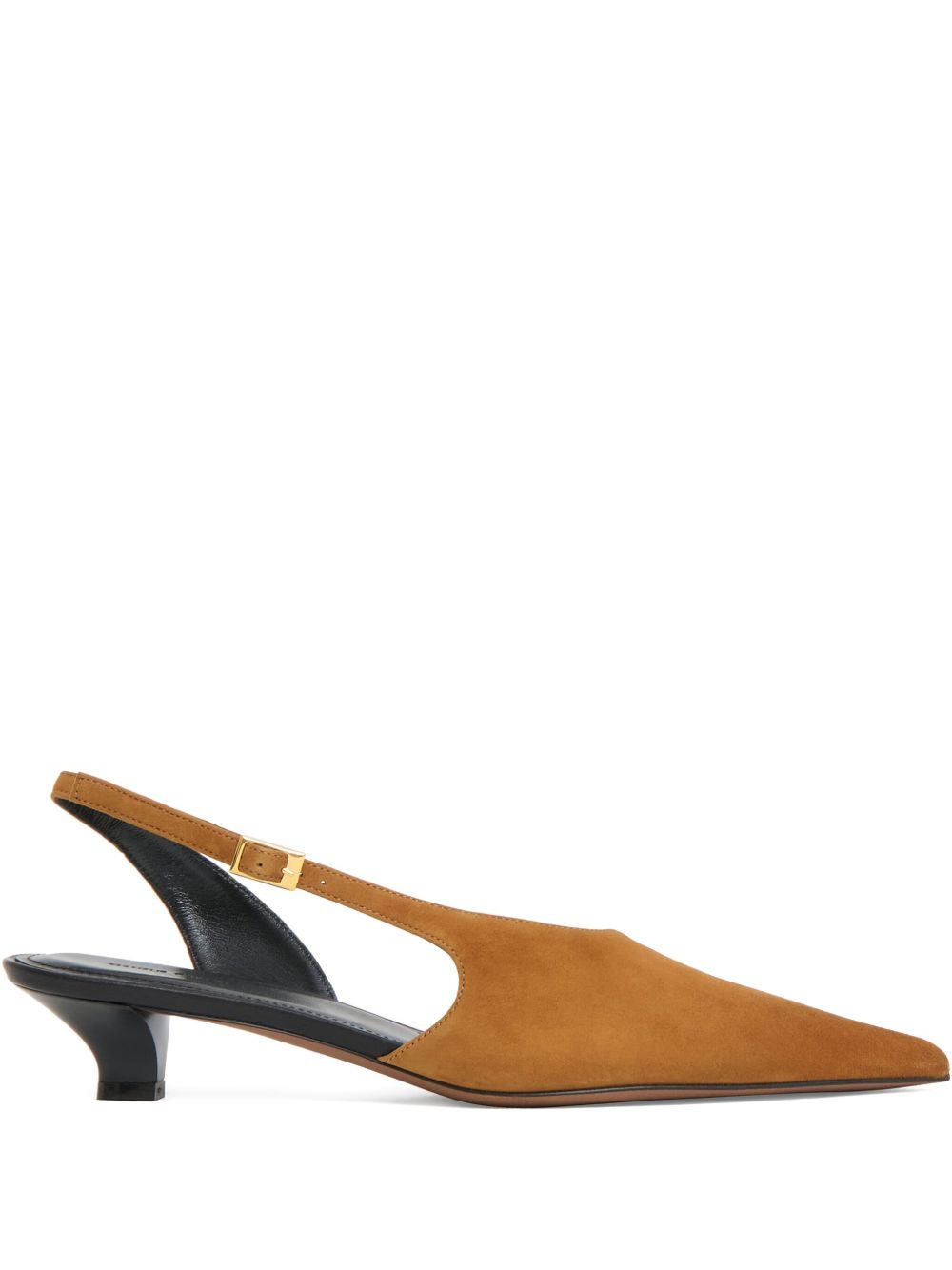slingback pointed-toe mules Highlights Made in Italy Composition Lining: Lambskin 100% Sole: Calf Leather 100% Outer: Kid Suede 100%