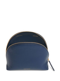 small Bellezza makeup bag Highlights - Navy blue - Top zip fastening - Logo stamp to the front - Internal logo stamp - Main compartment Made in Italy Composition Outer: Calf Leather (top grain) 100% SIZE & FIT Measurement DEPTH 2.75 in(7 cm) HEIGHT 5.11 in(13 cm) WIDTH 6.29 in(16 cm)
