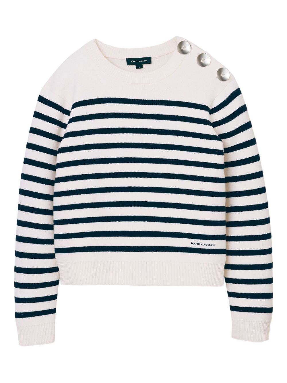Breton stripe button-detailed sweater Highlights - Off-white - Navy blue stripes - Crew neck - Shoulder button embellishment - Long sleeves - Ribbed hem Made in Italy Composition Merino 100%
