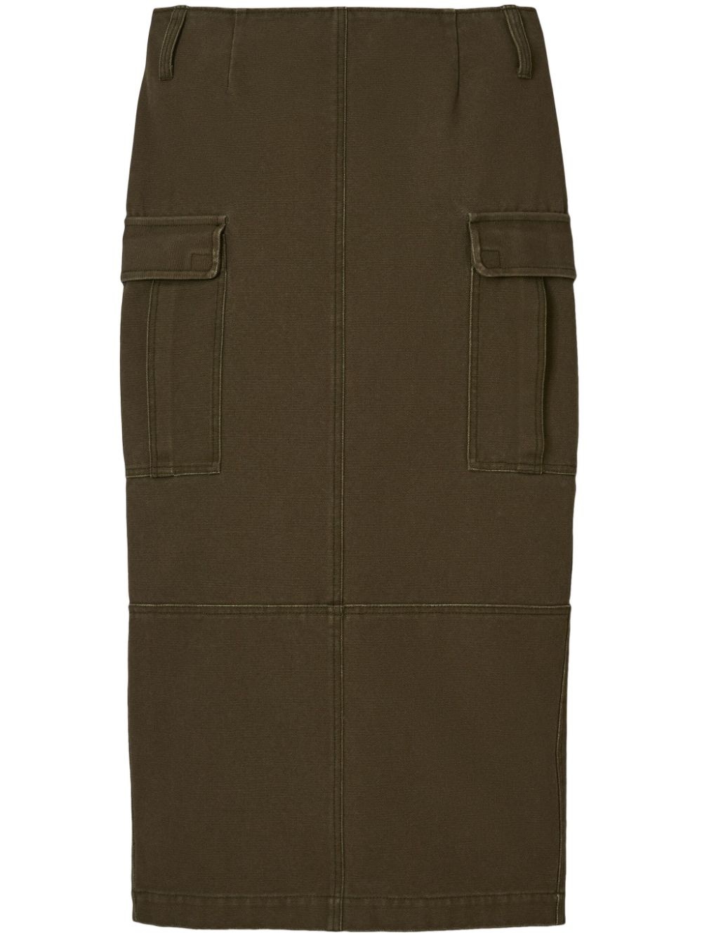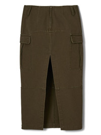 canvas cargo midi skirt Highlights - Olive green - Cotton - Canvas - Panelled design - Belt loops - Rear zip fastening - Two side cargo pockets - Rear slit - Mid-length - Straight hem Imported Composition Lining: Cotton 100% Outer: Cotton 100% Washing instructions Machine Wash
