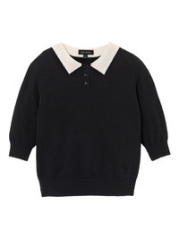 contrast-collar wool top Highlights - Black - Wool knit - Three-quarter sleeves - Contrasting collar - Button fastening - Straight hem Imported Composition Merino 100% Washing instructions Dry Clean Only