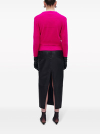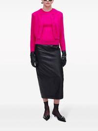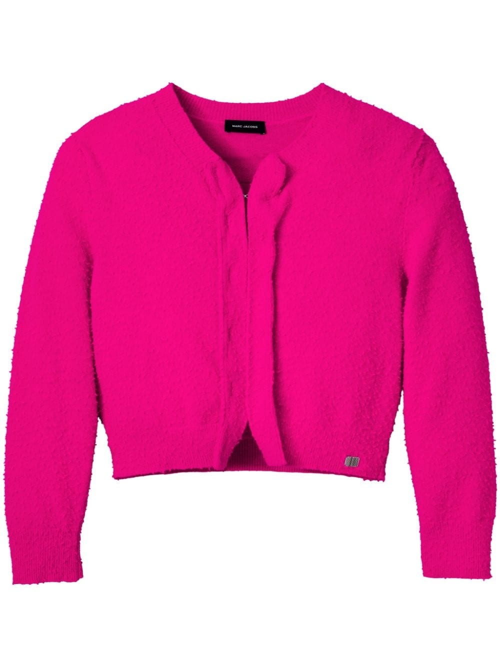 Pilled cropped wool cardigan Highlights - Pink - Wool - Knitted construction - Textured finish - Silver-tone logo plaque - V-neck - Hook and eye fastening - Long sleeves - Ribbed cuffs and hem Made in Italy Composition Merino 100%