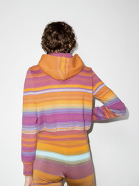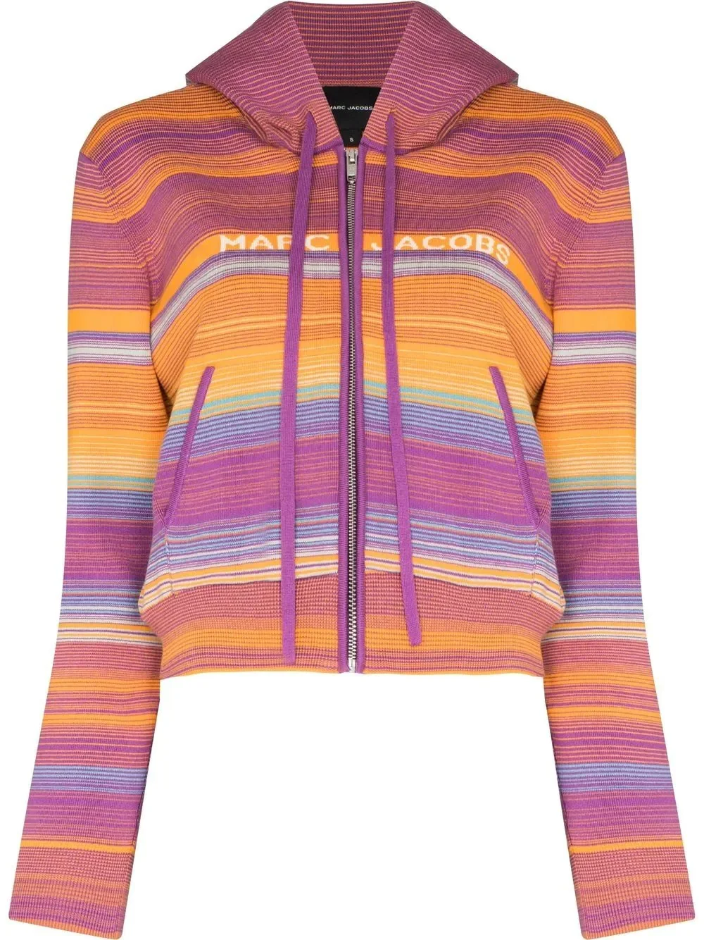 The Cropped zip hoodie Marc Jacobs brings vibrant patterns to their AW22 collection. This cropped zip hoodie is designed with a purple and orange striped pattern, whilst an intarsia-knit logo to the front provides branded appeal. Imported Composition Cotton 87%, Nylon 12%, Spandex/Elastane 1% SIZE & FIT Model measurements Height 5 ft 11 in(1.81 m) Bust/Chest 32.67 in(83 cm) Hips 37.79 in(96 cm) Waist 25.59 in(65 cm) Measurement SLEEVE LENGTH 23.22 in(59 cm) Shoulder Width 16.14 in(41 cm) LENGTH 18.89 in(48 cm) BUST 38.58 in(98 cm) FittingInformation This piece fits true to size. We recommend you get your regular size Cut for a slim fit Made with a mid-weight fabric Washing instructions Hand Wash