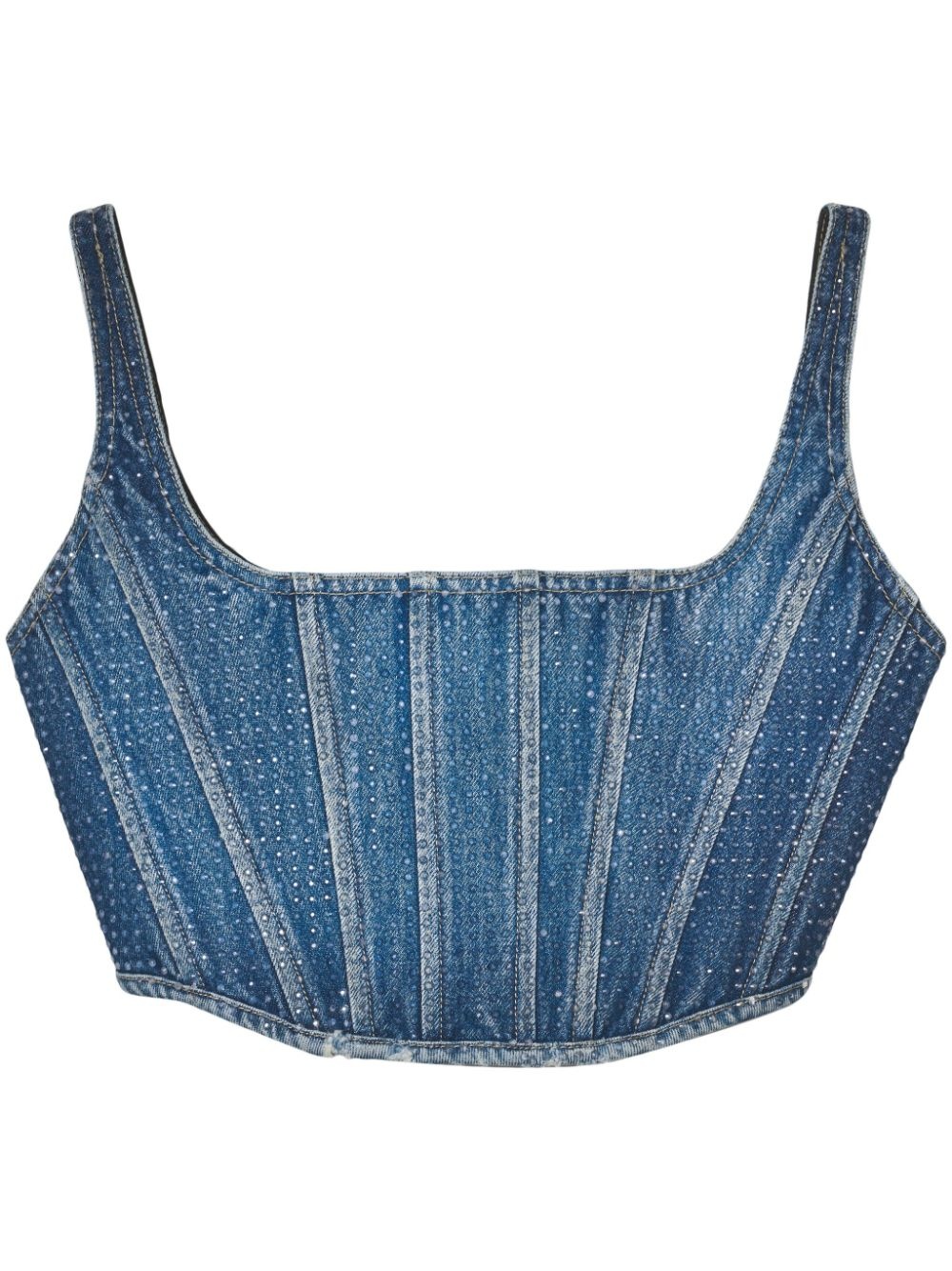 crystal-embellished denim corset Highlights - Blue - Cotton - Denim - Crystal embellishment - Panelled design - Square neck - Spaghetti straps - Concealed rear fastening - Curved hem - Cropped Imported Composition Lining: Cotton 100% Outer: Cotton 100%