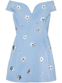 Daisy mini dress Highlights - Baby blue - Rear zip fastening - Floral embroidery - Off-shoulder - Straight hem Imported Composition Polyester 100%