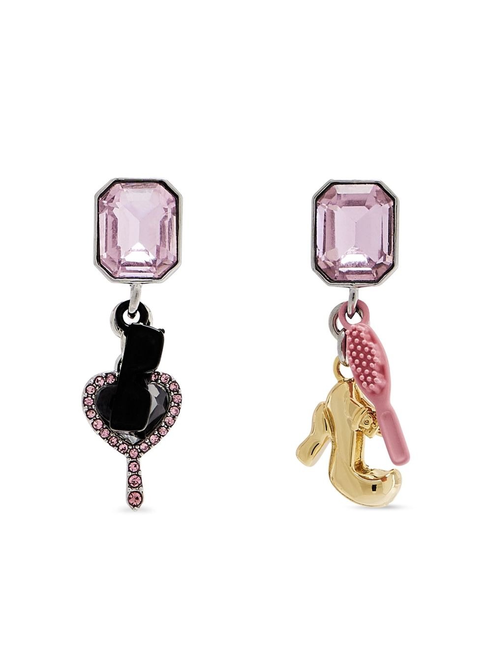 doll house-charms earrings Highlights - Multi-colour - Crystal embellishment - Heart charm - Shoe charm - Hairbrush charm - Key charm - These earrings intentionally do not match. Imported