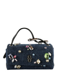 embellished top handle tote bag Highlights - Blue denim - Gem-embellished - Signature turnlock closure - Top handle - One internal zip pocket - Twill lining Imported Composition Cotton 98%, Polyester 2% SIZE & FIT Measurement DEPTH 4.33 in(11 cm) HANDLE 9.44 in(24 cm) HEIGHT 4.33 in(11 cm) WIDTH 7.87 in(20 cm)