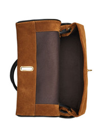 medium suede shoulder bag Highlights - Brown - Suede - Top handle - Gold-tone clasp - Flap closure Imported Composition Outer: Calf Suede 100% SIZE & FIT Measurement DEPTH 6.88 in(17.5 cm) HEIGHT 7.08 in(18 cm) STRAP 22.04 in(56 cm) WIDTH 13.77 in(35 cm)